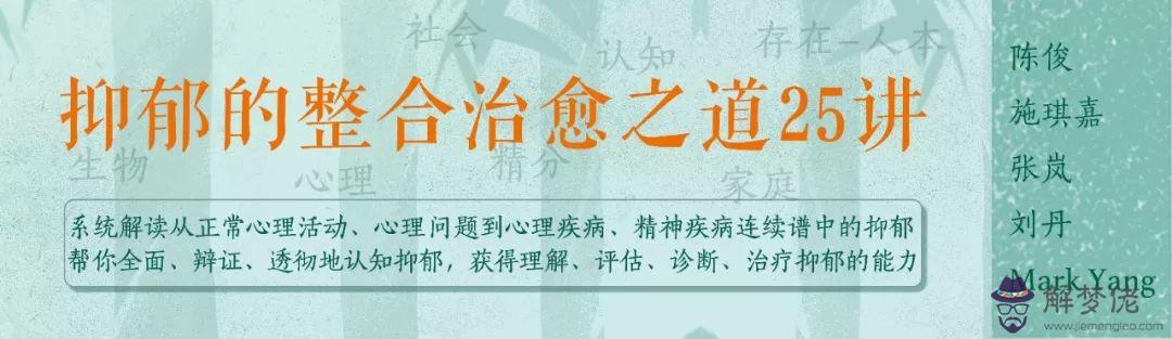 最后,抑郁其實是被束縛后的反映,也是最普遍的反映。因為有被束縛的感覺,才能明確自己要到哪里去。如果在生活及生命發展中完全沒有抑郁的感覺,沒有被束縛的感覺,你怎麼知道自己要去哪里,可以去哪里呢?抑郁雖然讓人感到不舒服,但同時也非常有益——它能告訴我們前進的方向。因此,適當地承擔抑郁,會讓你的內心更深刻、更寬廣。