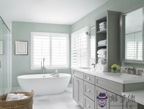 衛生間中可以放置一小碟食鹽,也能化解廁所穢氣。如果衛生間裝修時沒有對外的窗戶,那么可以在墻上掛一面鏡子形成一個想象的空間,因為鏡子可以加速氣能的流通。衛生間整體的顏色應該使用白色或者藍色,而要避免使用諸如大紅色等刺眼的色彩,令如廁者產生煩躁的心理。
