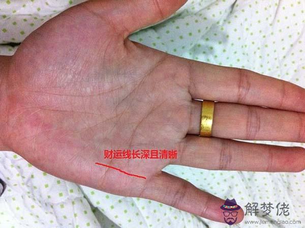 財運線,也就是小指根部水星丘處的豎線,這條線深直、有力,那就說明這個男人的財運非常旺盛,再配合好的事業線,不管是踏實工作還是求偏財,做生意,都能收獲豐厚的回報。財運線深直的男人通過自已的努力可以擁有不錯的財富,其它人往往無法達到的財運。