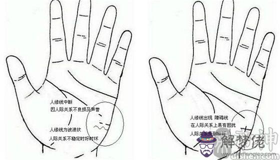 人緣線出現障礙線情況,代表命中有貴人相助,但人際關系會有挫折,造成對個人發展的阻礙和困擾。