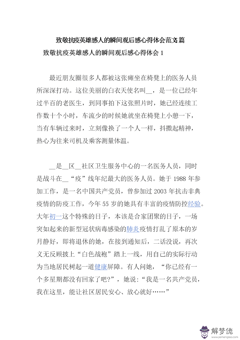 致敬疫情一線的一封信范文