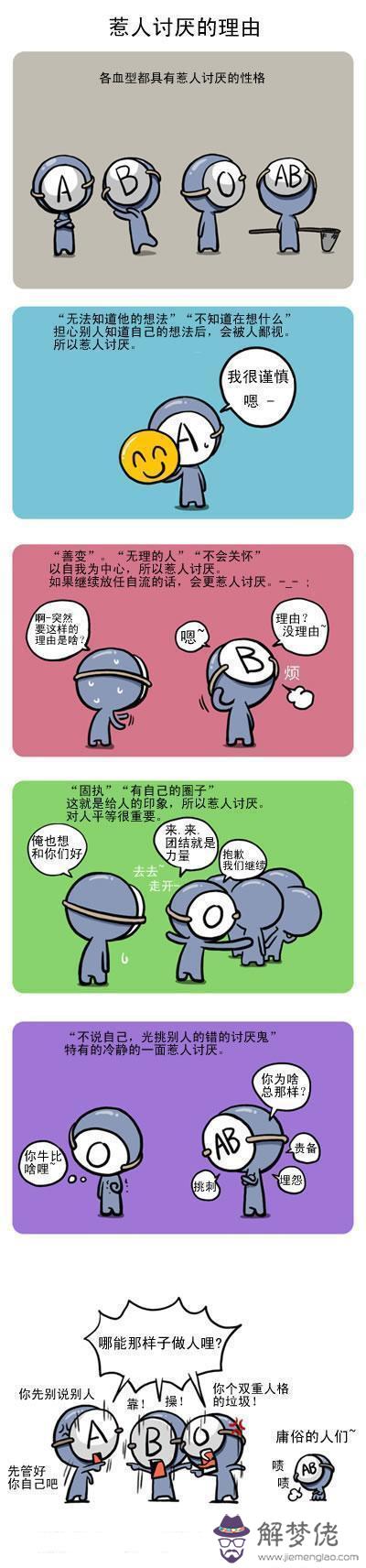 以上就是血型漫畫:各血型為啥惹人討厭的全部內容,更多血型資訊請關注解夢佬算命網熊掌號。