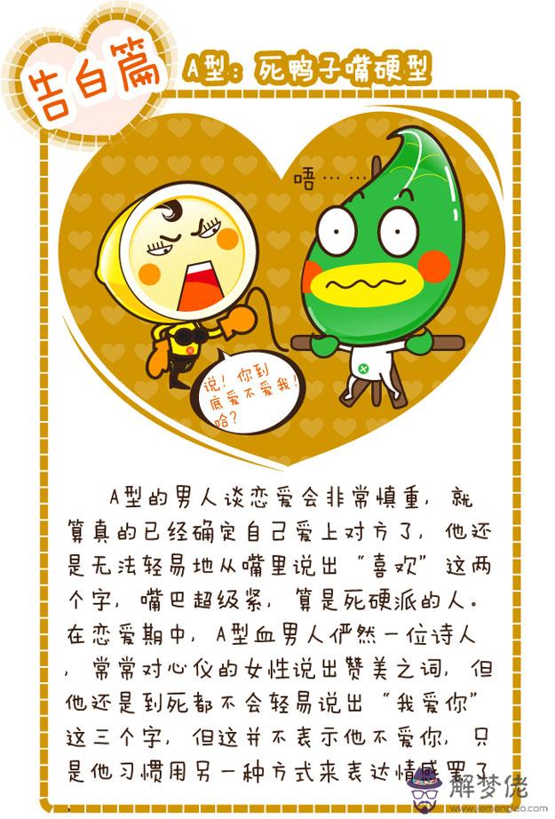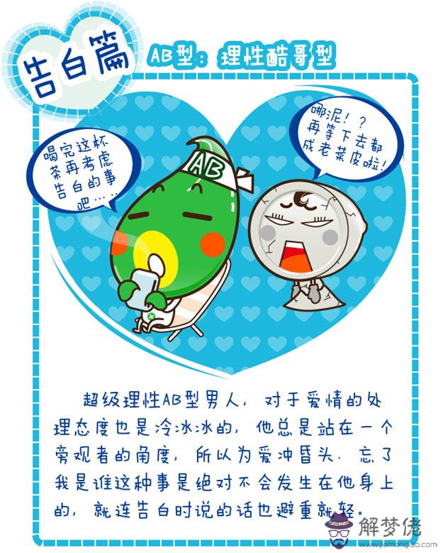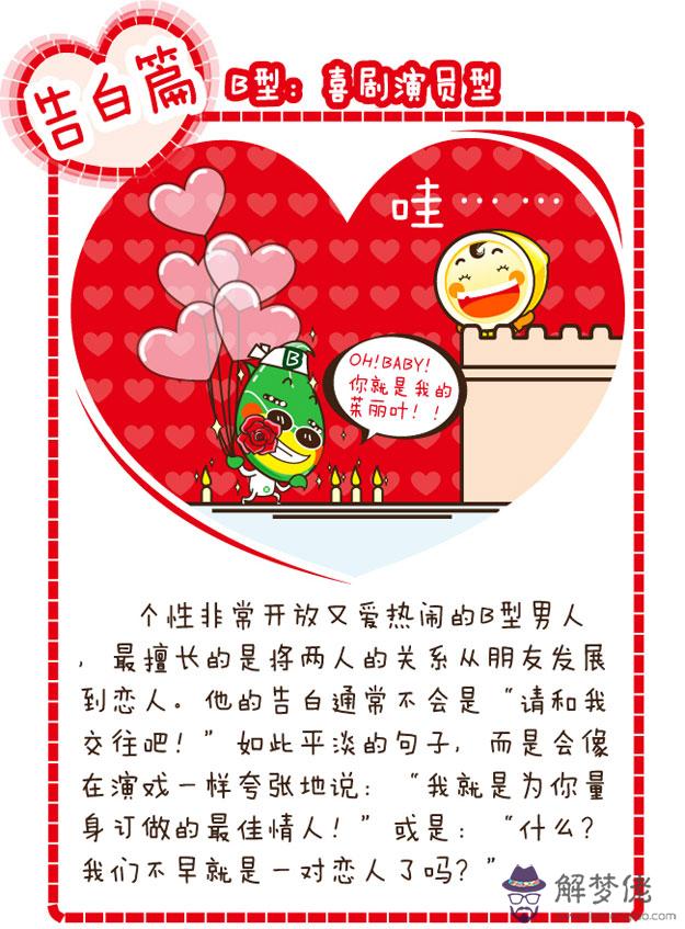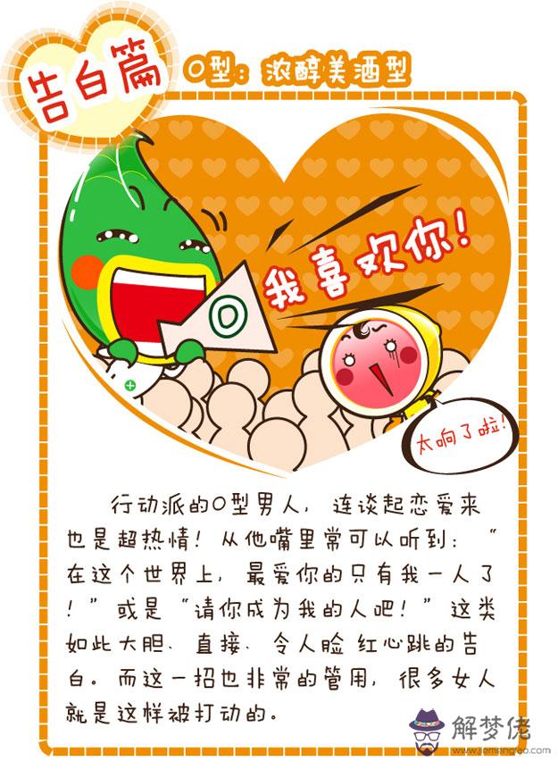 八卦四大血型男的表白方式 解夢佬 2021年05月13日 15:06 0 戀愛中的人兒都是幸福的,但總是需要一個人勇敢的和對方告白,才能夠促成一對情侶。每個人的表白方式都不一樣,今天星座屋小編根據四大血型男各自的性格特點,為大家分析四種不一樣的表白類型哦!各位童鞋們,不妨來解夢佬算命網學習一下,讓自己也能夠擁有一段幸福的愛情哦!A血型男的表白方式B血型男的表白方式O血型男的表白方式AB血型男的表白方式(完)以上就是八卦四大血型男的表白方式的所有內容,更多血型資訊請關注解夢佬算命網熊掌號,為您提供第一手內容。