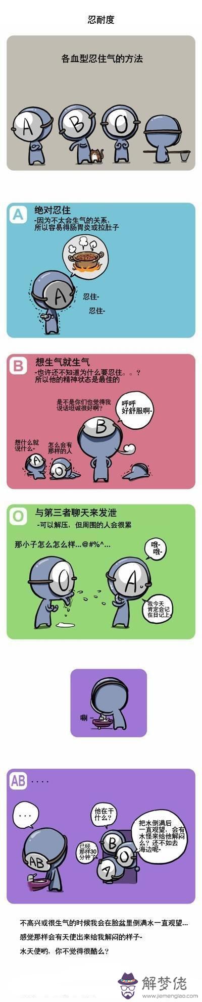 首先看血型漫畫,解夢佬算命網再給大家分析各個血型的忍耐度。