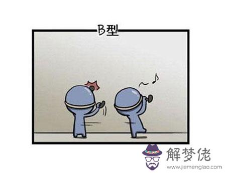 B型的人很樂觀,不喜自我反省,做事時不計前因后果,而且也不在乎別人對自己的看法.B型人的言行舉止是沖動的、突發而無反省的,他并不在乎行動的目的與結果,雖然B型人重現實際而富實行力,但是興趣卻很容易改變,B型人缺乏持續性格表現,乃是個性行動被發揮到壞一面所獲得的結果。如果被發揮到好的那一面的話,得以完成很完美的工作。不多話而重實行,藉以完成他人所不易完成的任務。