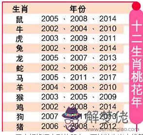 至今姻緣還未到的朋友,不妨以生肖來推算自己何時行桃花運。方法很簡單,根據下表看看自己所屬生肖于何年踏入桃花年,該年身邊的追求者會特別多。
