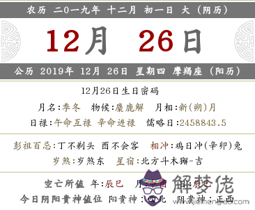 公歷 2019年 12月 26日 星期四 摩羯座 (陽歷)