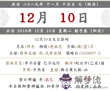 公歷 2019年 12月 10日 星期二 射手座 (陽歷)