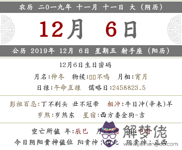 公歷 2019年 12月 6日 星期五 射手座 (陽歷)