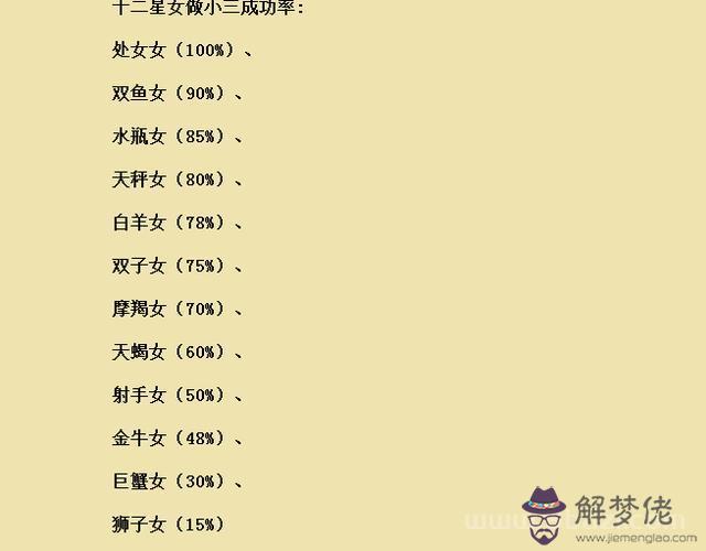 十二星女做小三成功率: