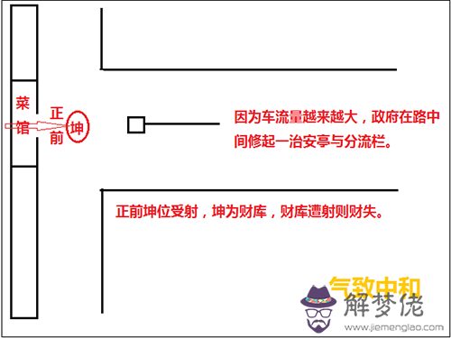 大家先看簡圖,此處是汀山一家頗有名氣的湘菜館,多年經營,得財頗豐。菜館正前方一條大道直直正對,菜館以食客的肚腹為消化點,故坤位空空蕩蕩則腹空,腹空則食,故飲食業不忌前方路沖,路沖則腹通,客人腹空則食。先天坤位平坦大道,則前景知名度高;坤為財庫,財庫車流滾滾來往,則財氣進進出出不絕。故本店經營多年,頗得名氣與財氣。(大家一定要注意:飲食業在風水上有其特殊性,正前的路沖或反弓都不怕,若其它行業就得仔細分辨清了,不能輕意亂選。)