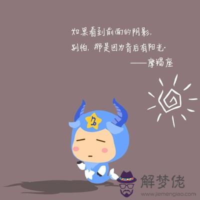 摩羯座可能是比金牛還要喜歡穩定生活的星座了,他們不愿意既定的事情脫離自己的規劃,不想安靜的生活受到干擾。從方方面面來看,摩羯都像是木訥又不解風情的人,然而他們有很濃烈的感情只是很難表達出來而已。固執也算情感吧?在他們主觀意識中的事物是不容許別人來說三道四的。還有該是自己擔下的責任是不會推辭的,因此,做下的決定絕對不會是玩玩就算了,耐得住苦,又能苦中作樂。當然,工作狂這個名號是跑不了的了,他們按照規矩行事,一眼一板地發展自己的事業。