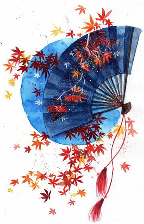 獅子座的專屬折扇攜帶著秋的韻味。整個藍色基底的折扇配上紅透的楓葉,真的給人一種停車坐愛楓林晚的感覺呢。