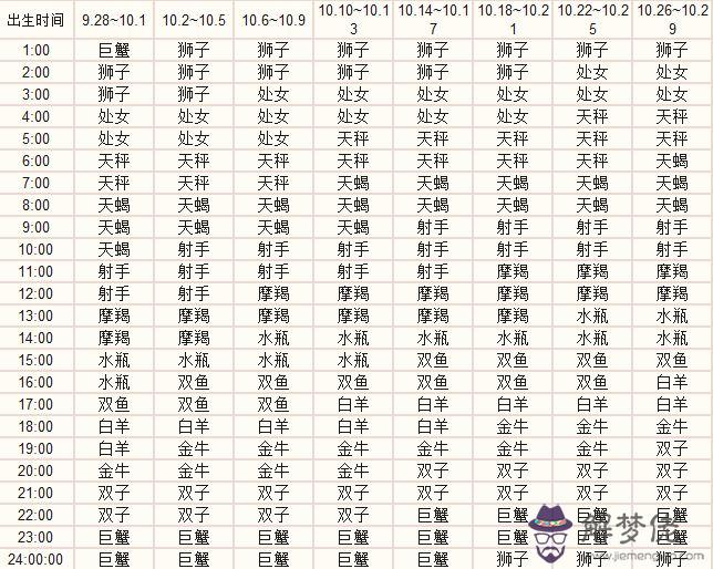 十月份出生,怎麼看上升星座查詢表: